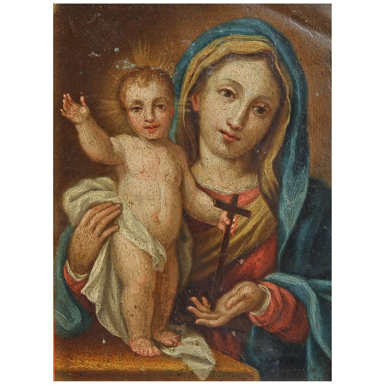 18th Century Oil Painting Madonna And Child